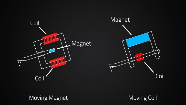 Rysunki poglądowy różnicy konstrukcyjnej wkładek MM i MC. Zjawisko przetwarzania ruchu igły na sygnał elektryczny obydwu konstrukcji jest oparte na tym samy zjawisku indukcji elektromagnetycznej. Wymagana jest zmian strumienia magnetycznego w którym umieszczony jest przewodnik. W konstrukcji MM zmiany (zaburzenia) powoduje ruchomy element magnetyczny lub materiał ferromagnetyczny magnesowany zewnętrznym magnesem poruszający się w otoczeniu cewek. w konstrukcji MC cewki poruszają się w polu stałego magnesu. Wykonanie cewek na obsadzie ruchomej igły z zachowanie ich minimalnej masy i promienia zawieszenia, które to wpływają na ruchliwości igły w zakresie ruchów wysokiej częstotliwości, wymaga zegarmistrzowskiej precyzji.